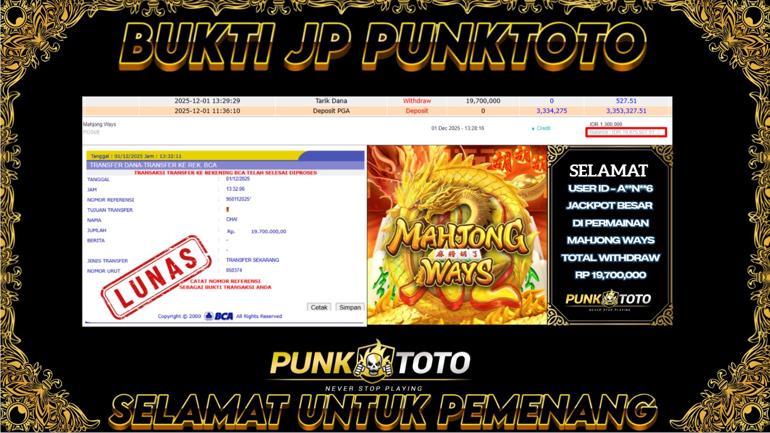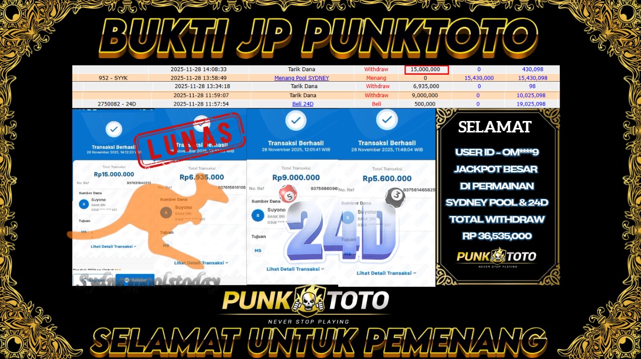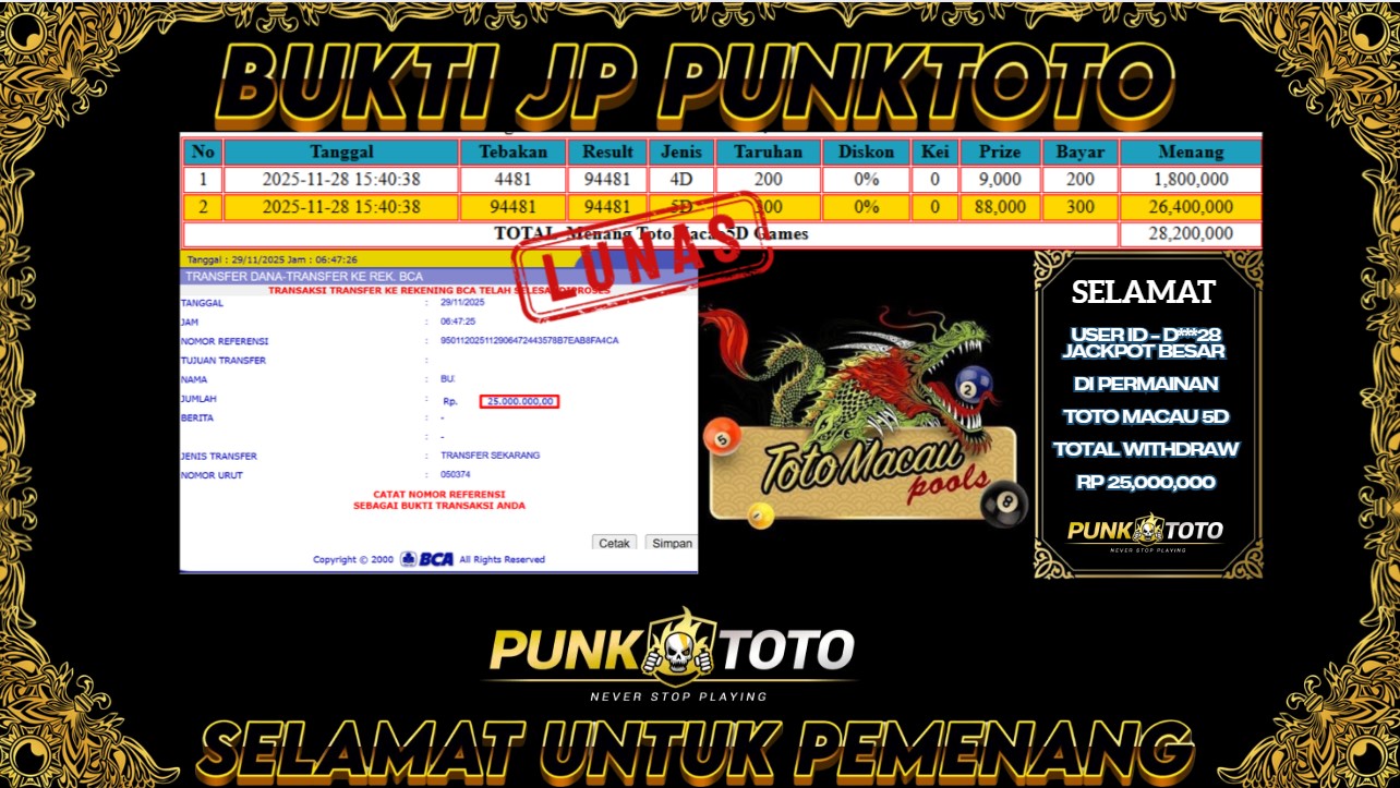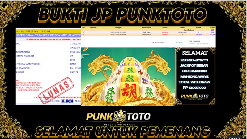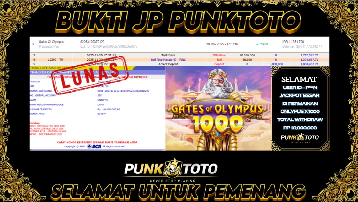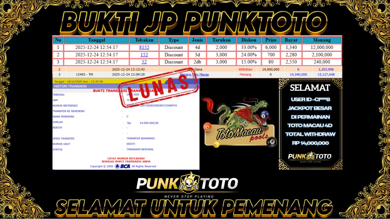 BUKTI PEMBAYARAN JACKPOTΒ PUNKTOTO DI PERMAINAN TOGEL, SLOT & LIVE GAME
