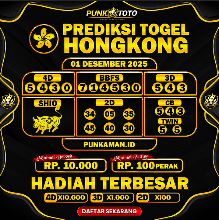 Jika anda sedang kebingungan cari bandar togel online terpercaya, karena itu anda bisa pilih salah satunya bandar togel PunkToto pada spanduk yang sudah kami siapkan dalam halaman live HONGKONG ini. Kami berisi daftar prediksi togel lengkap, live draw paling cepat, data keluaran lengkap yang dapat Anda pakai untuk membuat satu prediksi togel dengan tepat.