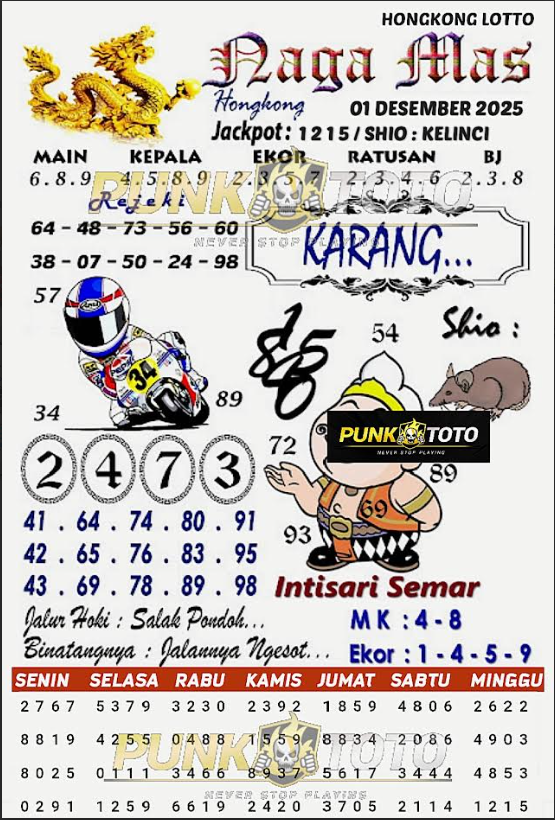 Syair Togel Hk hari ini bisa memberikan rasio kemenangan yang cukup besar buat beberapa pemain toto gelap atau togel online, dengan beri angka rekomendasi buat di gunakan. ada juga spesifikasi yang namanya live draw untuk melihat result tiap pasaran. fitur live draw juga memberikannya data anda bikin hasil angka yang keluar setiap pasaran seperti pasaran yang paling di gemari oleh pemain togel hongkong. Karena itu Anda yang suka bermain togel dan cari prediksi togel silakan untuk memeriksa syair togel hk ini hari di ramalan togel online yang resmi dan terpercaya.