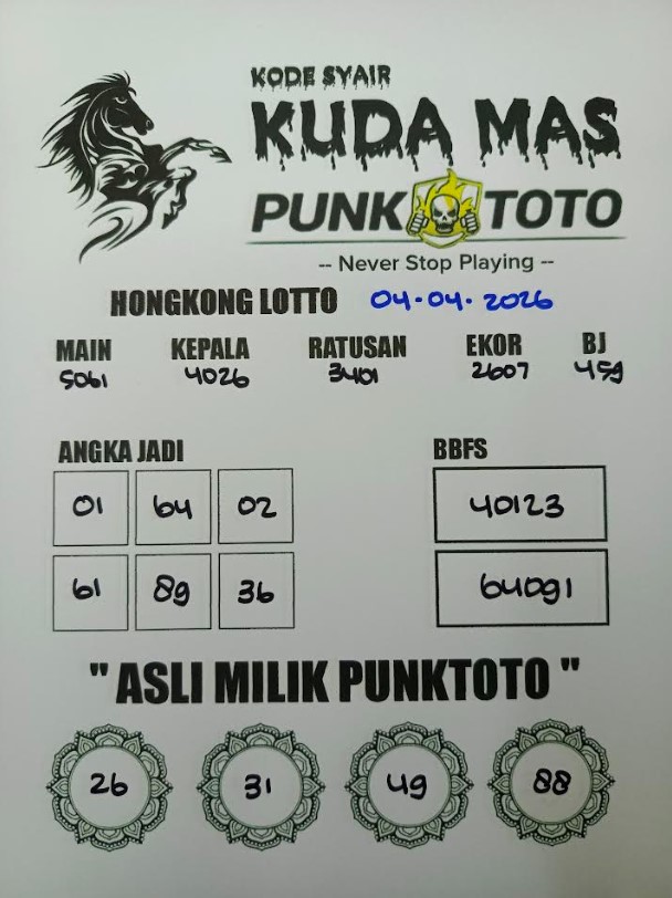 Jika anda sedang kebingungan cari bandar togel online terpercaya, karena itu anda bisa pilih salah satunya bandar togel PunkToto pada spanduk yang sudah kami siapkan dalam halaman live HONGKONG ini. Kami berisi daftar prediksi togel lengkap, live draw paling cepat, data keluaran lengkap yang dapat Anda pakai untuk membuat satu prediksi togel dengan tepat.