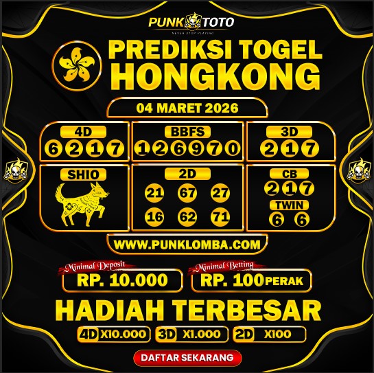 Jika anda sedang kebingungan cari bandar togel online terpercaya, karena itu anda bisa pilih salah satunya bandar togel PunkToto pada spanduk yang sudah kami siapkan dalam halaman live HONGKONG ini. Kami berisi daftar prediksi togel lengkap, live draw paling cepat, data keluaran lengkap yang dapat Anda pakai untuk membuat satu prediksi togel dengan tepat.