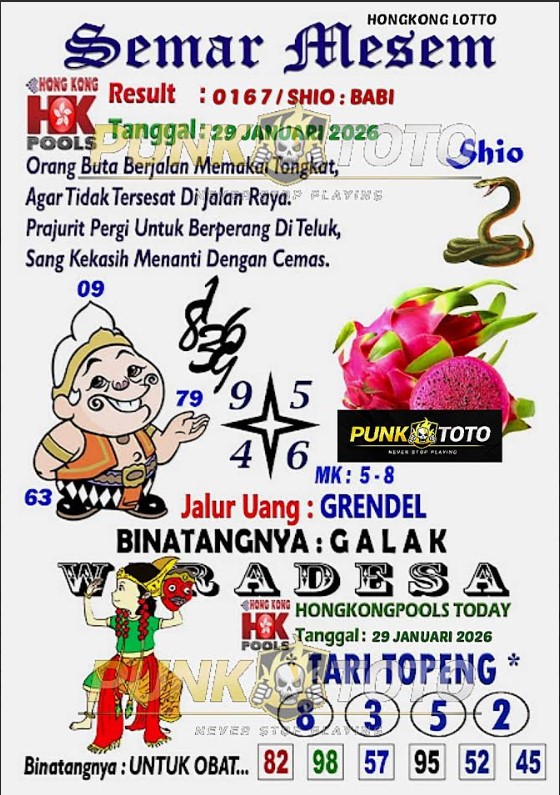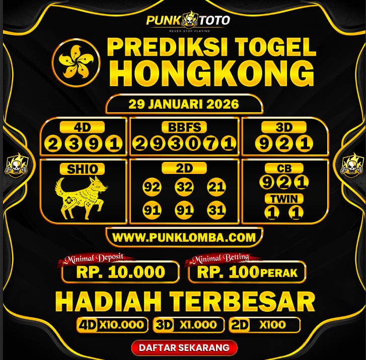 Jika anda sedang kebingungan cari bandar togel online terpercaya, karena itu anda bisa pilih salah satunya bandar togel PunkToto pada spanduk yang sudah kami siapkan dalam halaman live HONGKONG ini. Kami berisi daftar prediksi togel lengkap, live draw paling cepat, data keluaran lengkap yang dapat Anda pakai untuk membuat satu prediksi togel dengan tepat.