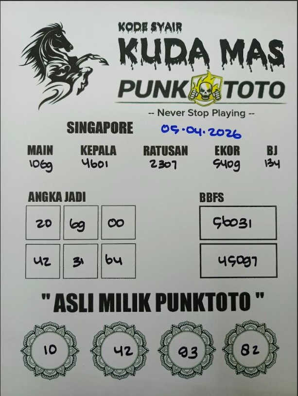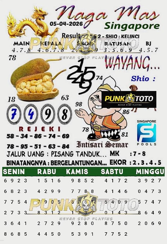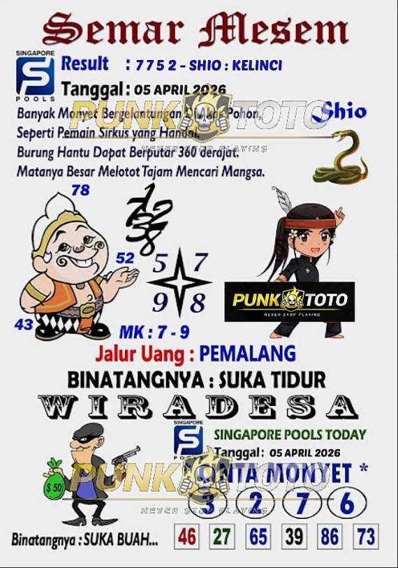 Jika anda sedang kebingungan cari bandar togel online terpercaya, karena itu anda bisa pilih salah satunya bandar togel PunkToto pada spanduk yang sudah kami siapkan dalam halaman live SINGAPORE ini. Kami berisi daftar prediksi togel lengkap, live draw paling cepat, data keluaran lengkap yang dapat Anda pakai untuk membuat satu prediksi togel dengan tepat.