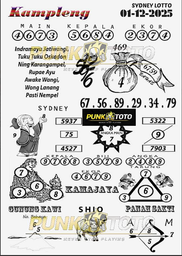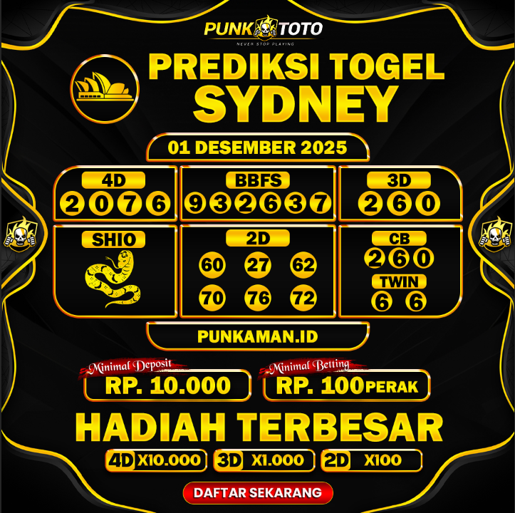 Jika anda sedang kebingungan cari bandar togel online terpercaya, karena itu anda bisa pilih salah satunya bandar togel PunkToto pada spanduk yang sudah kami siapkan dalam halaman live SYDNEY ini. Kami berisi daftar prediksi togel lengkap, live draw paling cepat, data keluaran lengkap yang dapat Anda pakai untuk membuat satu prediksi togel dengan tepat.