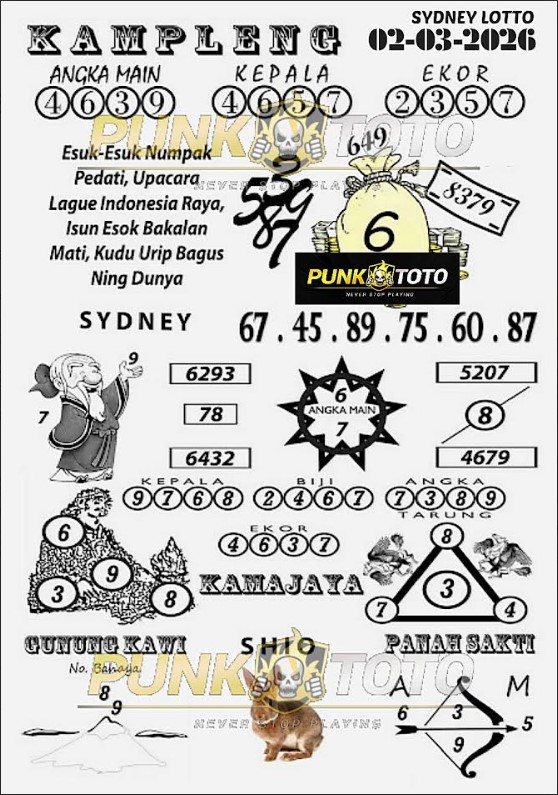 Jika anda sedang kebingungan cari bandar togel online terpercaya, karena itu anda bisa pilih salah satunya bandar togel PunkToto pada spanduk yang sudah kami siapkan dalam halaman live SYDNEY ini. Kami berisi daftar prediksi togel lengkap, live draw paling cepat, data keluaran lengkap yang dapat Anda pakai untuk membuat satu prediksi togel dengan tepat.