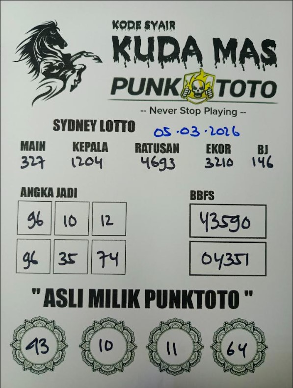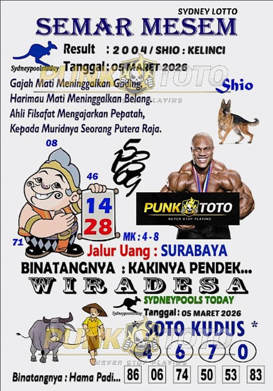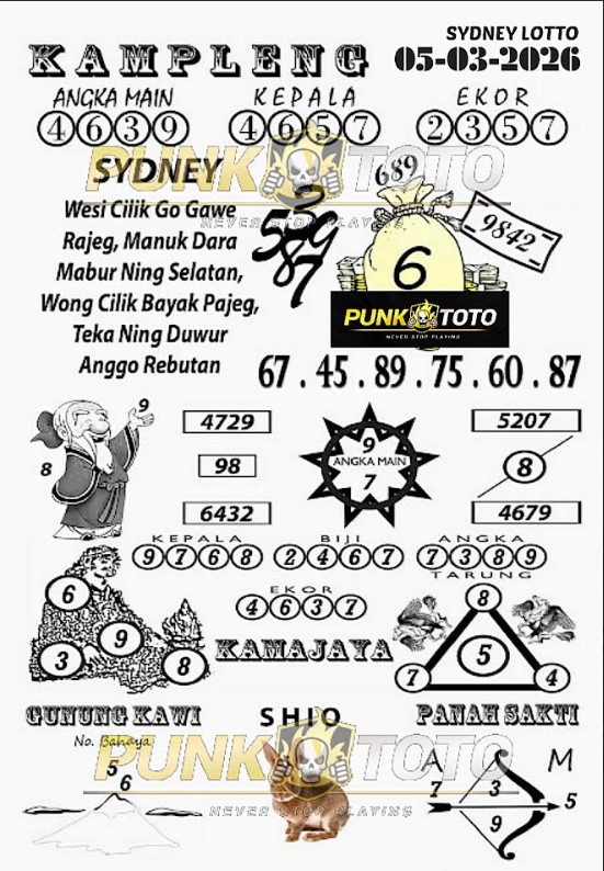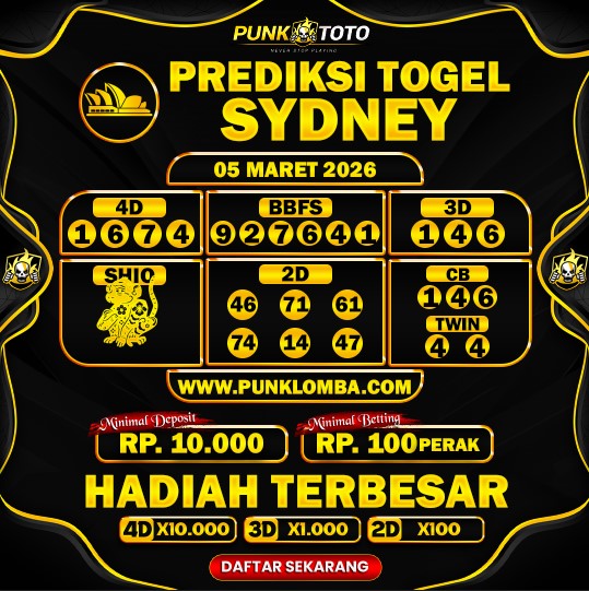 Jika anda sedang kebingungan cari bandar togel online terpercaya, karena itu anda bisa pilih salah satunya bandar togel PunkToto pada spanduk yang sudah kami siapkan dalam halaman live SYDNEY ini. Kami berisi daftar prediksi togel lengkap, live draw paling cepat, data keluaran lengkap yang dapat Anda pakai untuk membuat satu prediksi togel dengan tepat.