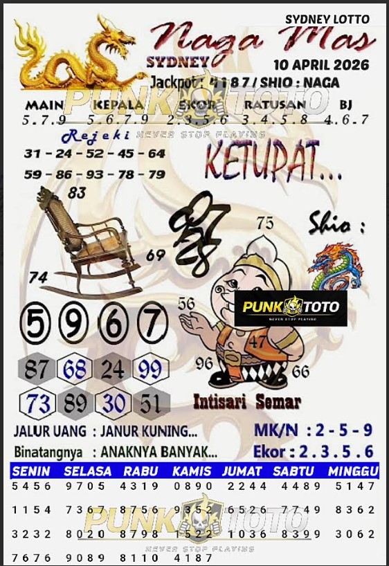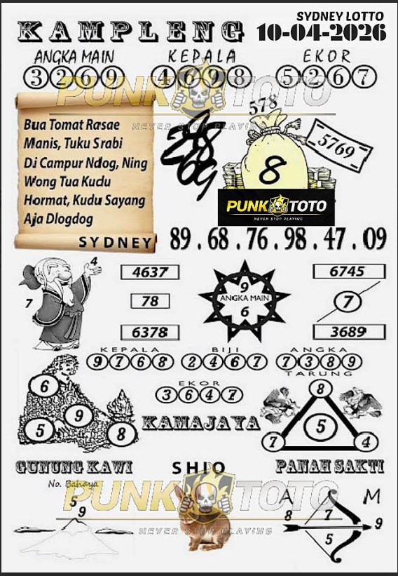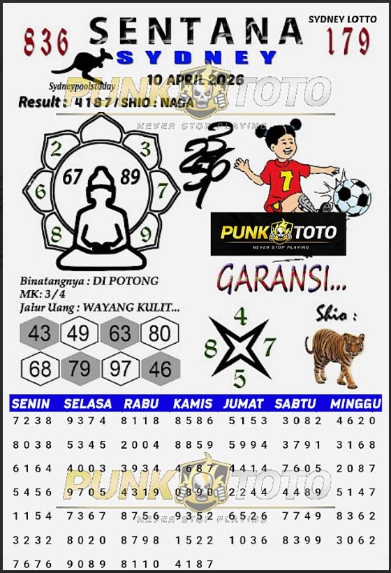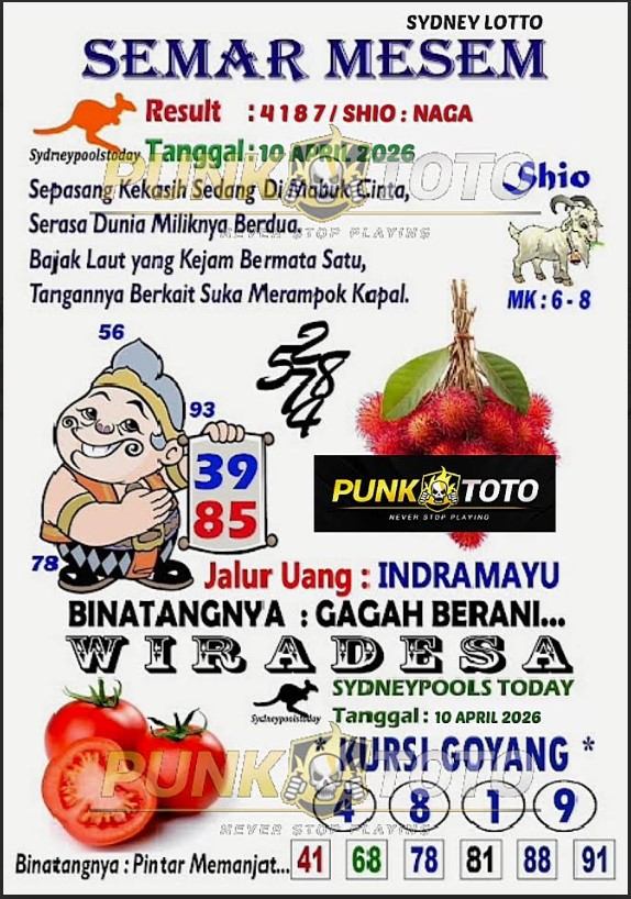 Jika anda sedang kebingungan cari bandar togel online terpercaya, karena itu anda bisa pilih salah satunya bandar togel PunkToto pada spanduk yang sudah kami siapkan dalam halaman live SYDNEY ini. Kami berisi daftar prediksi togel lengkap, live draw paling cepat, data keluaran lengkap yang dapat Anda pakai untuk membuat satu prediksi togel dengan tepat.