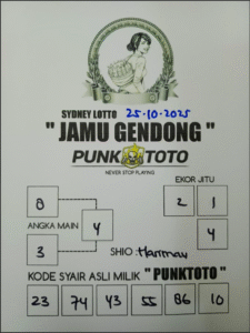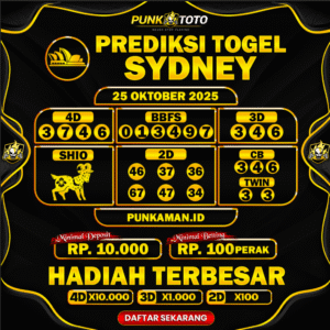 Jika anda sedang kebingungan cari bandar togel online terpercaya, karena itu anda bisa pilih salah satunya bandar togel PunkToto pada spanduk yang sudah kami siapkan dalam halaman live SYDNEY ini. Kami berisi daftar prediksi togel lengkap, live draw paling cepat, data keluaran lengkap yang dapat Anda pakai untuk membuat satu prediksi togel dengan tepat.